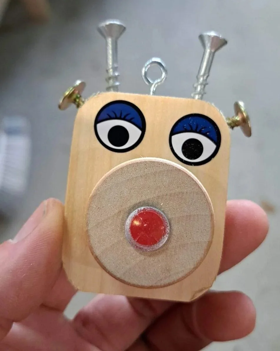 Each child will follow instructions to make 1 x reindeer using screws and screw drivers, sanding blocks and stickers and then get free reign to make 1 x other ornament of their choosing (present / Santa or other) using a range of decorating materials.