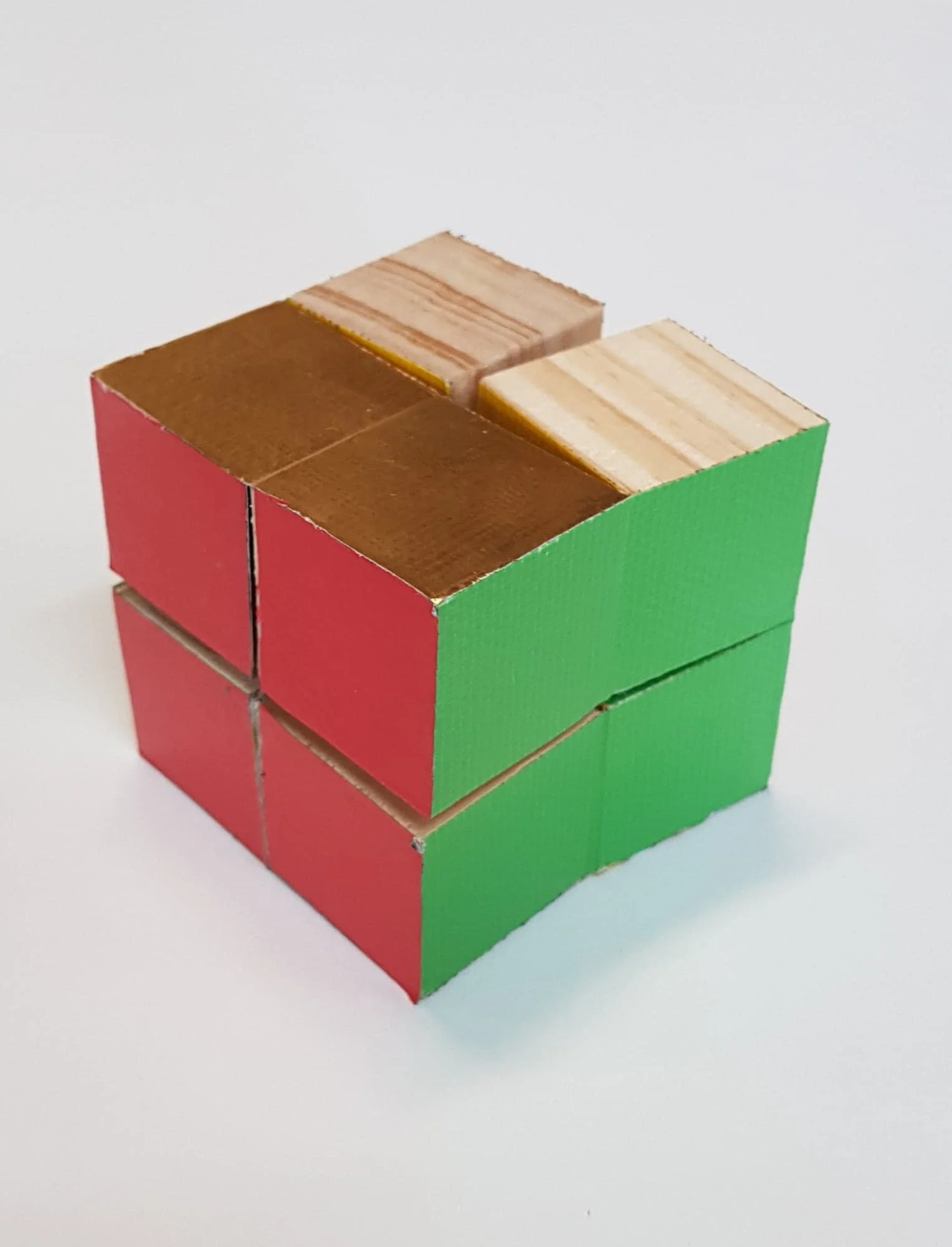 Kids make their own pocket sized fun fidget toy using wooden cubes and cloth tape.