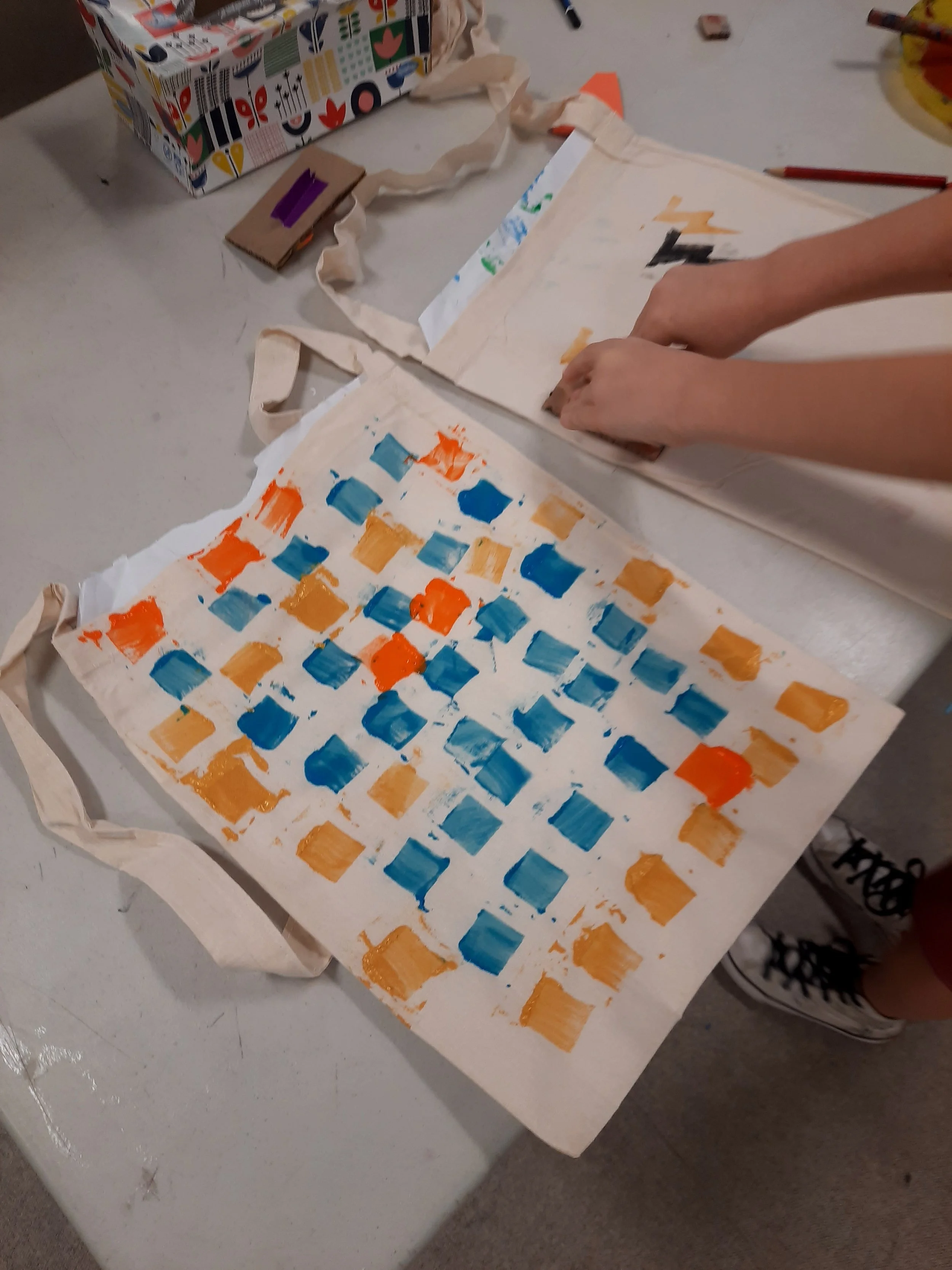 STAMP MAKING AND PRINTING ON TOTE BAGS